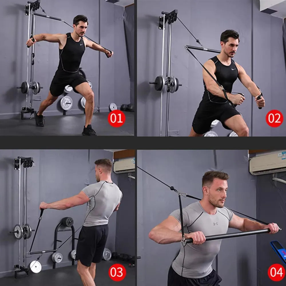 - Versatilidade no treino: puxada alta (lat pulldown), remadas, extensões de tríceps, bíceps no cabo e cruzamentos.