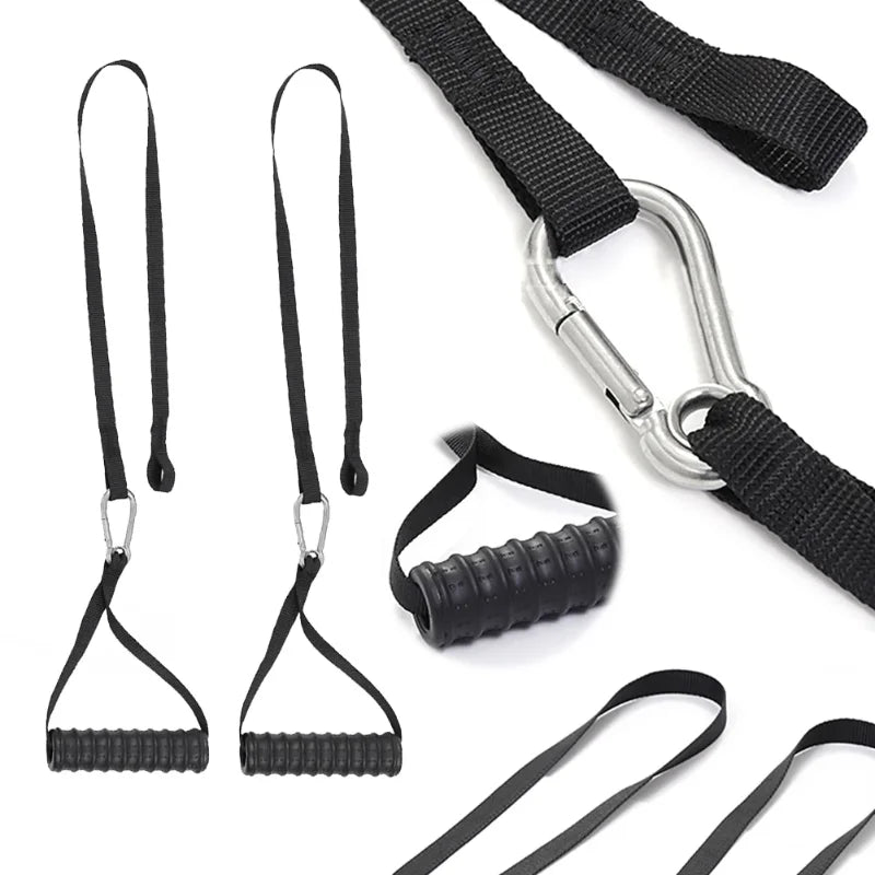Sim. Acompanha mosquetão padrão e é compatível com torres, polias e estações de musculação.