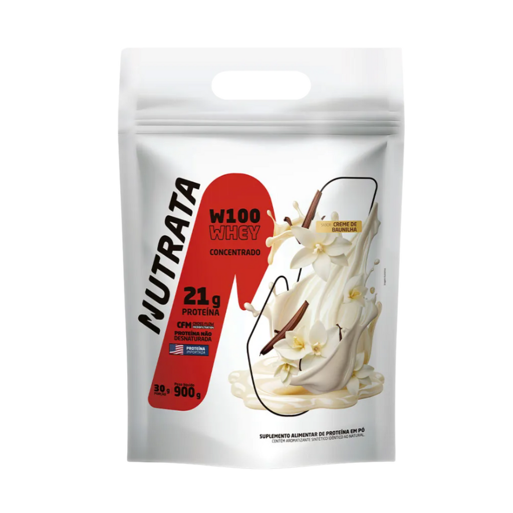 W100 WHEY é um suplemento com WPC, uma proteína concentrada do soro do leite, que pode ser usado para auxiliar no ganho de massa muscular devido ao seu alto teor de aminoácidos essenciais, especialmente os de cadeia ramificada. Possui elevada concentração proteica, é low carb e livre de adoçantes artificiais. Pode ser indicado para consumo diário, conforme orientação nutricional, e é recomendado para quem não tem alergia a leite e soja.