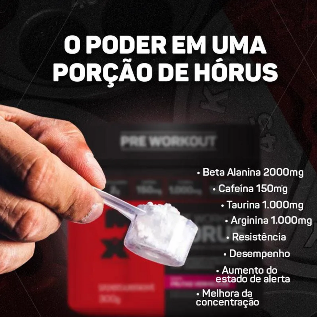 O Horús foi o primeiro pré-treino brasileiro, lançado após a liberação da ANVISA para o uso de Beta Alanina pela indústria de suplementos. Ele contém ingredientes que irão potencializar o seu treino e melhorar sua performance! Para quem se exercita com intensidade, a fadiga é um dos principais fatores que influenciam o rendimento, por isso desenvolvemos o HÓRUS : com formulação altamente tecnológica e ingredientes de altíssima qualidade, para você ter um treino com muito mais eficiência.
